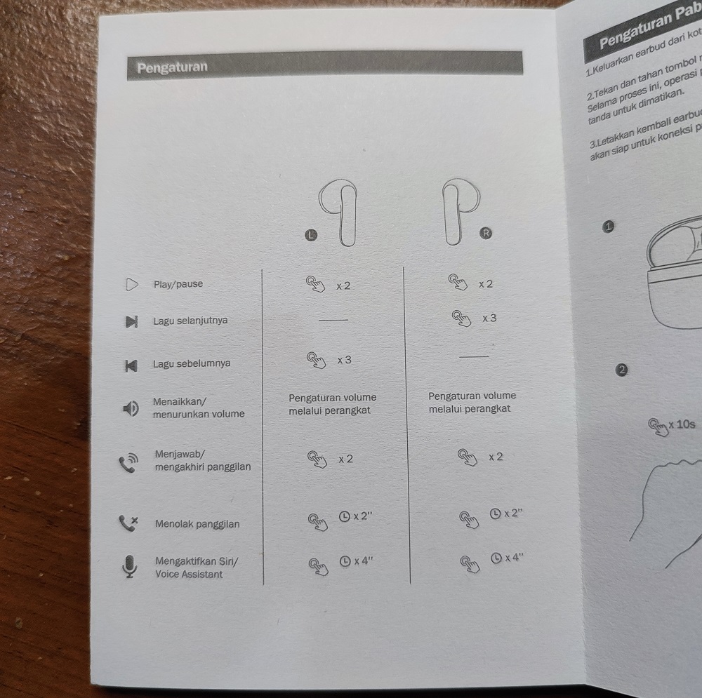 Ketuk dua kali dia akan pause/play, ketuk tiga kali yang kanan akan next ke lagu berikutnya, yang kiri ke lagu sebelumnya. Ketuk 4 kali akan membuka Google assistant. Akses yang lain saya lupa, ada di buku manual kok tenang saja. Lihat sendiri nih…