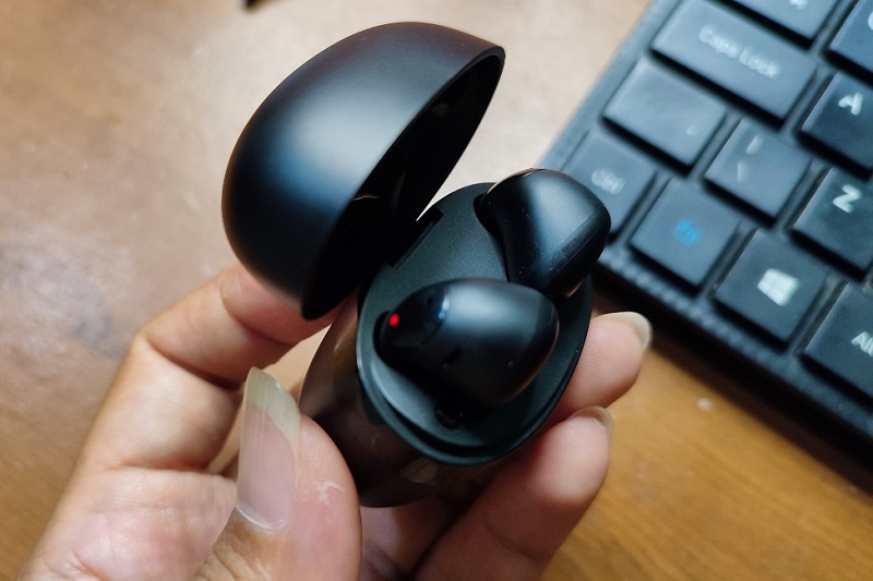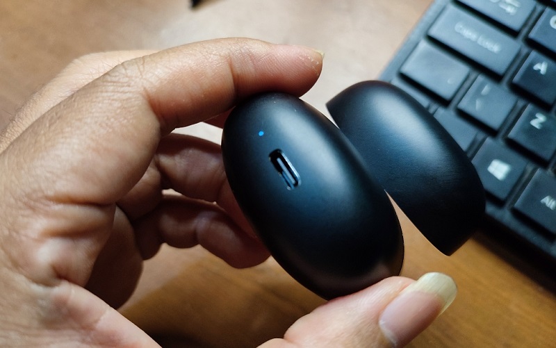 Jujur agak kaget sedikit karena bobot charging case beserta earbuds T50e ini ringan banget. Jauh lebih ringan dibanding TWS Anker yang saya pakai sebelumnya. Ini karena kapasitas baterainya juga jauh lebih kecil.